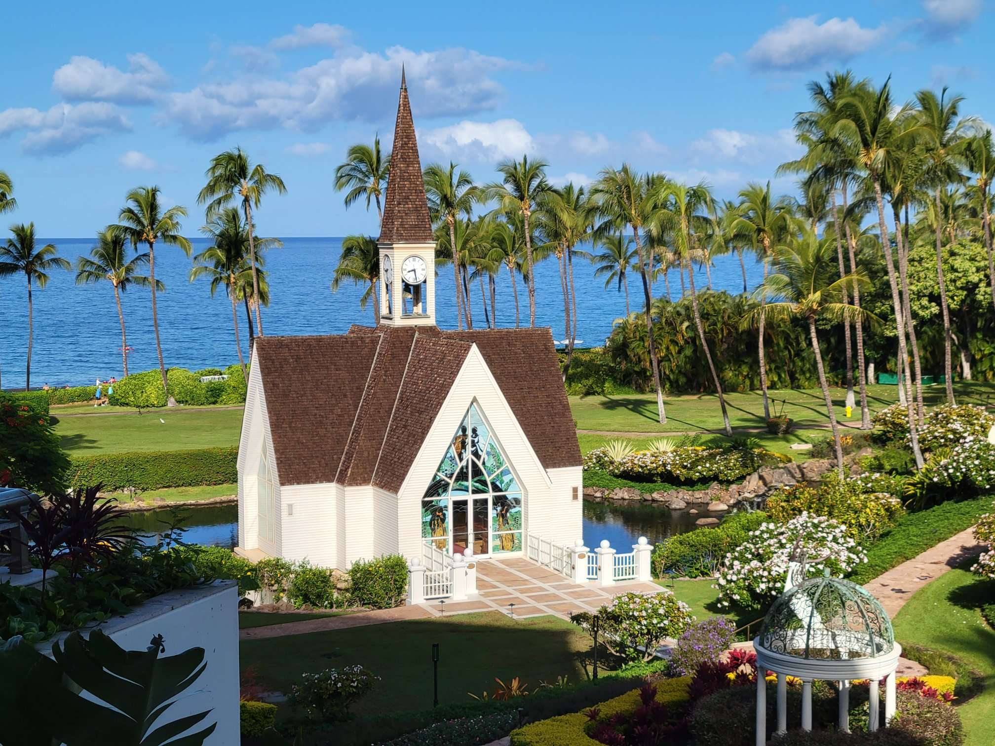 The little chapel at Grand Wailea – Jeanne and Dane try to renew vows, but it all goes wrong